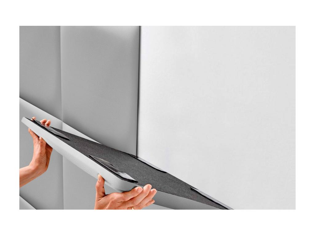 Meublita Upholstered Headboard in High-Quality Faux Leather, Meublitaérieure composed of interchangeable self-adhesive panels, light grey, 110 cm